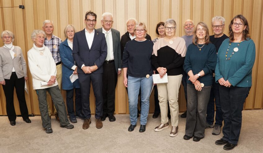 Gruppenfoto mit Ministerpräsident Winfried Kretschmann und Dr. Andre Baumann MdL